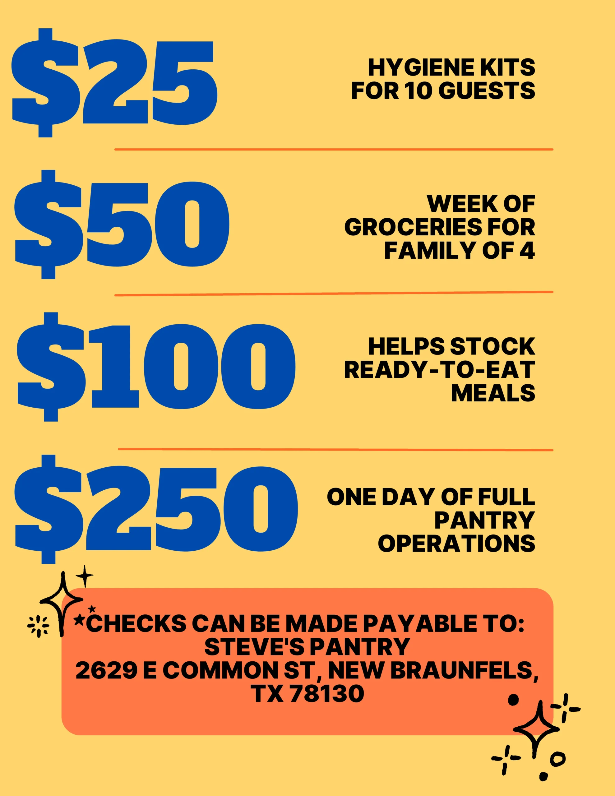 $250 supports one full day of pantry operations